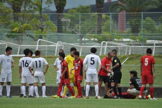 終盤、相手の猛攻も31関、14堀金、36中土井、7明比とDF陣が体を張って死守。7明比が足の痙攣で交代すると4黒田がDFに入り最後まで全員でに凌ぐ。