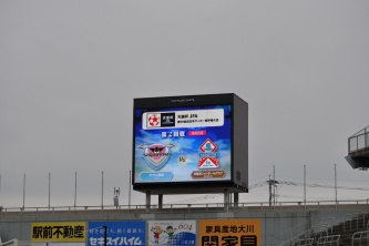 ベストアメニティスタジアムの控室はびっくりするほど広く当然ながらピッチコンディションは最高、サッカー専用スタジアムのオーロラビジョンにはサガン鳥栖vs多度津FCと掲載されている。