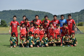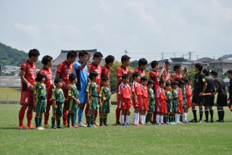 今日の試合はエスコートキッズに丸亀城南サッカー少年団の子供達に参加していただき試合中もご父兄の皆さんと一緒に試合を盛り上げていただいた。