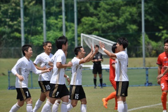 47分、右サイドペナルティ角付近からFKのチャンス、⑦萬條から中央㉑田代がヘディングで合わすが惜しくも枠の外。