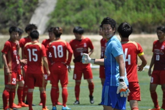 続く19分、エリア左角付近からFKのチャンス、キッカーは⑦萬條、萬條は狙いすまして直接ゴールを狙うがボールは僅かに枠の上。
