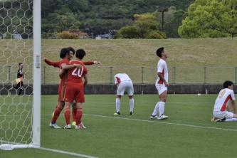 続く8分、右サイドを⑮中村⑬中土井で崩し中土井は一気にゴール前へ、中土井はシュートを放つがボールはポスト直撃、跳ね返ったボールに②福島が詰めるが枠を超えてしまう。