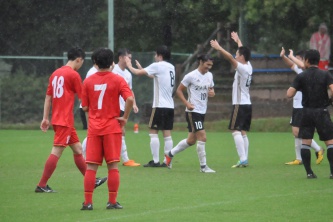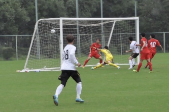 81分、途中出場の⑮中村のパスカットから⑬中土井へ、中土井はエリア外から強烈なシュートを放つが相手GKのスーパーセーブではじき出される。