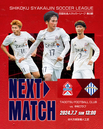 【試合情報】2024四国社会人サッカーリーグ 第8節 vs 中村クラブ【A】 2024年07月06日 【試合日程】 【第48回四国社会人サッカーリーグ第8節】 【日時】7月7日(日)13:00キックオフ 【対戦カード】多度津FC vs 中村クラブ 【会場】大方球技場人工芝 今節もアウェイでの試合となります。 後期日程の大事な初戦です。 残り半分、、、 結果を求めて全力で戦います! 皆さんの熱い応援をよろしくお願いいたします!