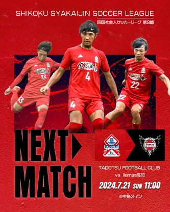 【試合情報】2024四国社会人サッカーリーグ 第9節 vs llamas高知【H】 2024年07月20日 【次節試合日程】 【第48回四国社会人サッカーリーグ 第9節】 【日時】7月21日(日)11:00キックオフ 【対戦カード】多度津FC vs llamas高知 【会場】生島メイン リーグ戦の再開です。 一瞬たりとも気を抜けない試合が続きますので、ぜひ会場にて熱い応援をよろしくお願いいたします。 開幕戦以来の生島での試合となります。 暑さ対策を十分にとってお越しください。 皆様の応援をお待ちしております。