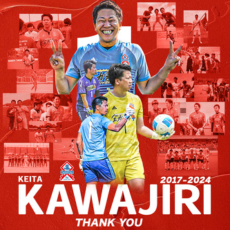 このたび、多度津フットボールクラブでは、背番号1番、川尻慶太選手が2024シーズンをもちまして退団することとなりましたのでお知らせいたします。