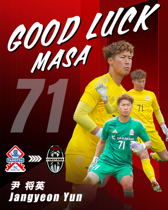 このたび、多度津フットボールクラブでは、背番号71番の尹将英(ユン チャンヨン)選手が中国社会人サッカーリーグ所属、福山シティFCに移籍することになりましたのでお知らせします。