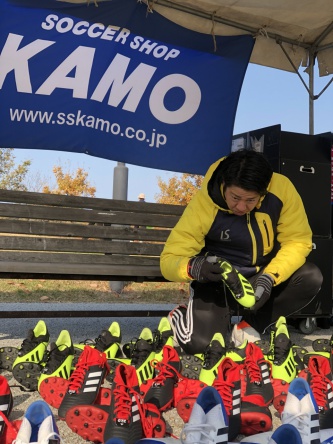 この日は、サッカーショップKAMO高松丸亀町グリーン店様のご協力の元、adidas社のスパイク試し履き会も行われました。