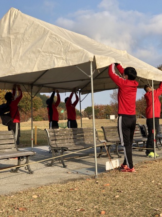 まずは、早朝より会場設営とコート準備。