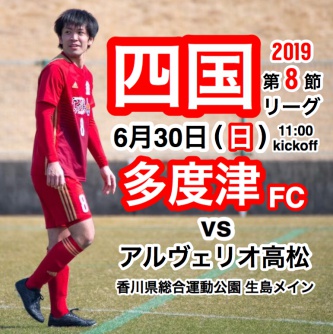 【試合情報】2019四国社会人サッカーリーグ 第8節 vs アルヴェリオ高松 2019年06月28日 日頃は多度津フットボールクラブにご支援いただきまして誠にありがとうございます。 次節試合日程をお知らせします。 【試合日程】 【2019四国社会人サッカーリーグ 第節】 【日時】6月930日(日)11:00キックオフ 【対戦カード】 多度津FC vs アルヴェリオ高松 【会場】香川県総合運動公園 生島メイン リーグ後半戦が始まります。 残り半分、最後まで応援よろしくお願いします。