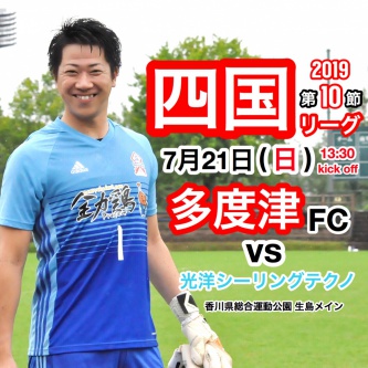 【試合情報】2019四国社会人サッカーリーグ 第10節 vs 光洋シーリングテクノ 2019年07月18日 日頃は多度津フットボールクラブにご支援いただきまして誠にありがとうございます。 次節試合日程をお知らせします。 【試合日程】 【2019四国社会人サッカーリーグ 第10節】 【日時】7月21日(日)13:30キックオフ 【対戦カード】 多度津FC vs 光洋シーリングテクノ 【会場】香川県総合運動公園 生島メイン 良い流れを切らさぬようチーム全員で戦い抜きます。 応援よろしくお願いします。