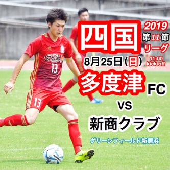 【試合情報】2019四国社会人サッカーリーグ 第11節 vs 新商クラブ 2019年08月23日 日頃は多度津フットボールクラブにご支援いただきまして誠にありがとうございます。 次節試合日程をお知らせします。 【試合日程】 【2019四国社会人サッカーリーグ 第11節】 【日時】8月25日(日)11:00キックオフ 【対戦カード】 多度津FC vs 新商クラブ 【会場】愛媛県 グリーンフィールド新居浜 久々のリーグ戦です。 3連勝目指して戦います。 応援よろしくお願いします。