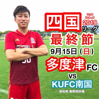 【試合情報】2019四国社会人サッカーリーグ 最終節 vs KUFC南国 2019年09月13日 日頃は多度津フットボールクラブにご支援いただきまして誠にありがとうございます。 次節試合日程をお知らせします。 【試合日程】 【2019四国社会人サッカーリーグ 最終節】 【日時】9月15日(日)11:00キックオフ 【対戦カード】 多度津FC vs KUFC南国 【会場】高知県 春野球技場 2019シーズン、四国リーグ最終節になります。 最後まで多度津FCらしく戦いたいと思います。 応援よろしくお願いします。