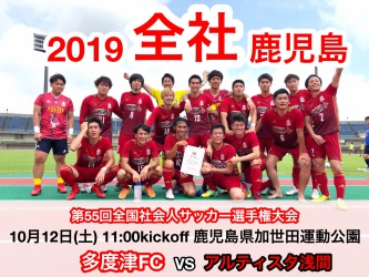 【試合情報】第55回 全国社会人サッカー選手権大会 vsアルティスタ浅間 2019年10月11日 日頃は多度津フットボールクラブにご支援いただきまして誠にありがとうございます。 次節試合日程をお知らせします。 【試合日程】 【第55回 全国社会人サッカー選手権大会 】 【日時】10月12日(日)11:00キックオフ 【対戦カード】 多度津FC vs アルティスタ浅間 【会場】鹿児島県 加世田運動公園多目的広場 いよいよ明日全社が開幕します。 四国代表として全力で戦います。 応援よろしくお願いします。