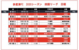 【重要】2020四国社会人サッカーリーグ第1節についてのお知らせ。 2020年03月30日 日頃より多度津フットボールクラブへの熱きご支援ご声援誠にありがとうございます。 【重要】 2020年度四国社会人サッカーリーグが4月5日(日)開幕予定でしたが、新型コロナウイルス感染拡大予防対策のため4月5日(日)第1節を開催しないことが決定されましたのでお知らせします。第1節の延期日を立てるか中止の決断、また今後の試合の開催予定につきましては来週以降のお知らせになります。緊急事態につきご連絡が遅れていますがどうぞご理解の程よろしくお願いします。