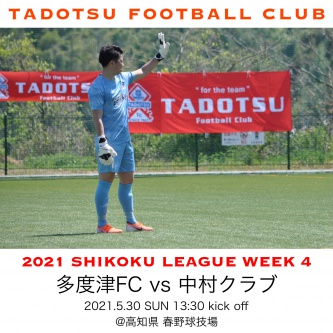 【試合情報】2021四国社会人サッカーリーグ 第4節 vs 中村クラブ【A】 2021年05月29日 日頃より多度津フットボールクラブへの熱きご支援、ご声援誠にありがとうございます。 2021シーズンの四国社会人サッカーリーグ第3節の試合日程をお知らせします。 【試合日程】 【2021四国社会人サッカーリーグ 第4節】 【日時】5月30日(日) 13:30キックオフ 【対戦カード】 多度津FC vs 中村クラブ 【会場】高知県 春野球技場 順位など関係なく目の前の試合に集中して臨みたいと思います。 皆様の熱きご声援よろしくお願いします。