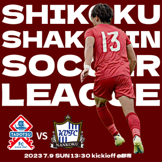【試合情報】2023四国社会人サッカーリーグ 第9節 vs KUFC南国【A】 2023年07月08日 日頃より多度津FCへの熱きご支援、ご声援誠にありがとうございます。 【2023 第47回四国社会人サッカーリーグ 第9節】 【日時】7月9日(日)13:30キックオフ 【会場】高知県 野市青少年センター 【対戦相手】KUFC南国